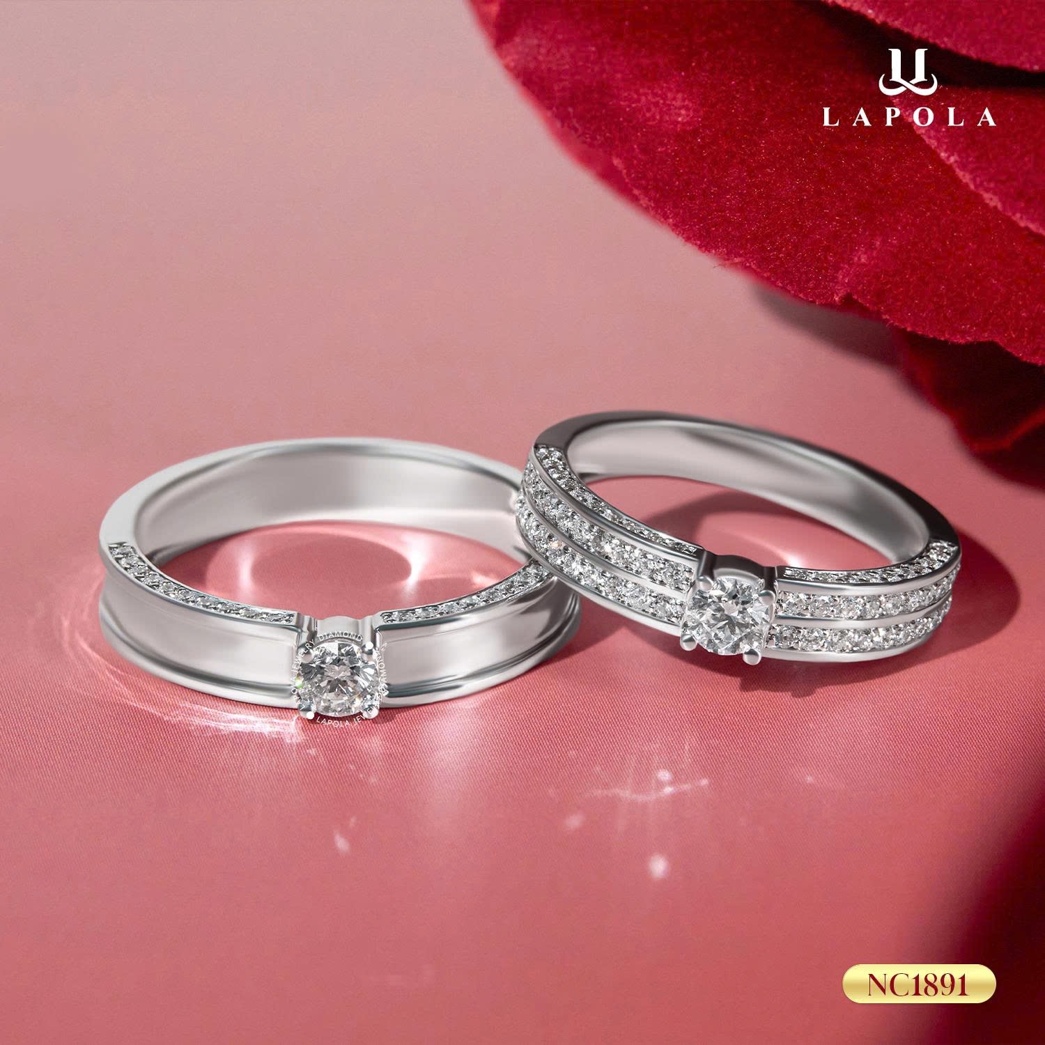 Trong chiến dịch lần này, Lapola mang đến những mẫu nhẫn cưới kim cương cao cấp, được chế tác tỉ mỉ với từng đường nét tinh xảo.